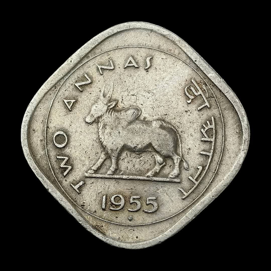 two anna 1955 bombay mint rare